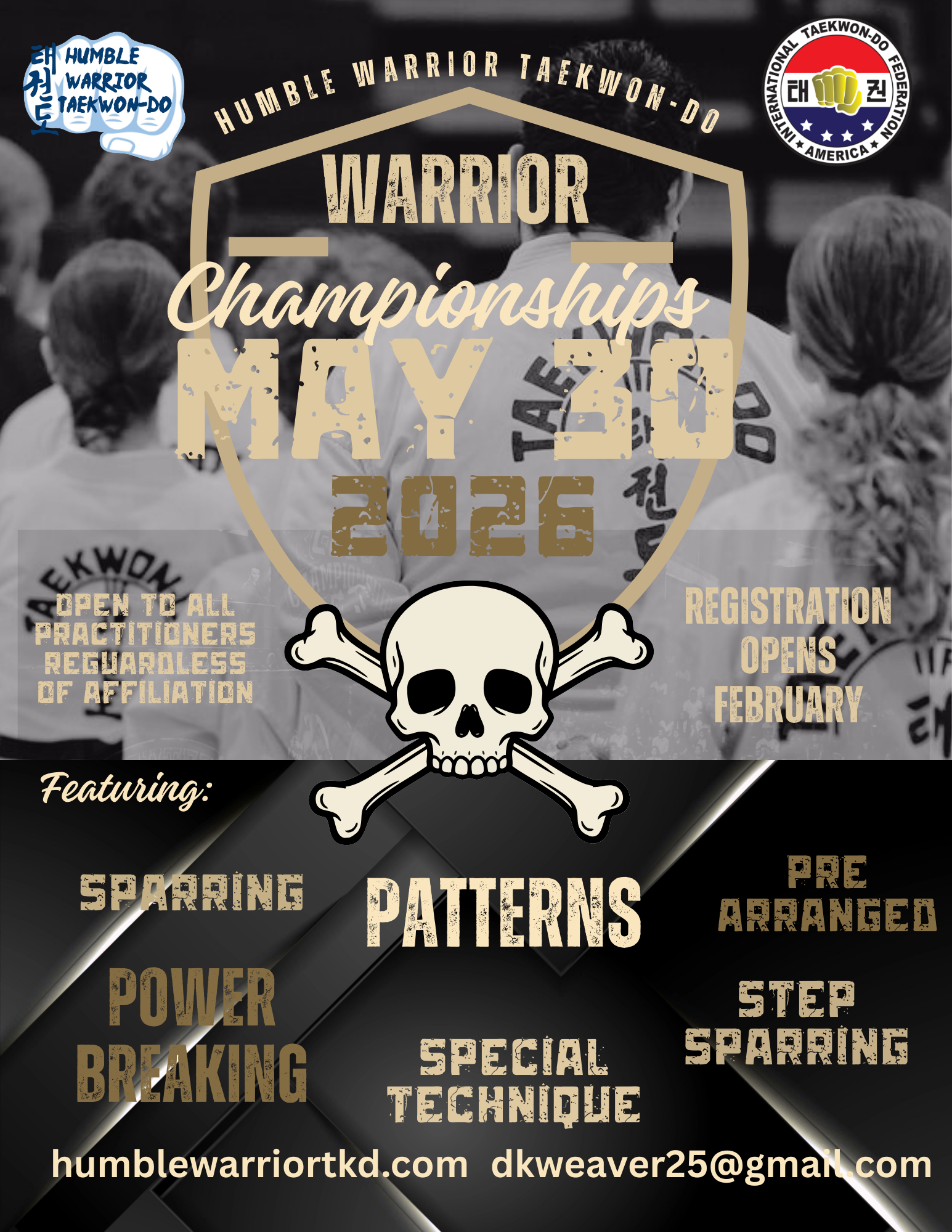 Warrior Championships Map Unavailable Date/Time Date(s) - 05/30/20268:30 am - 6:30 pm Categories Seminar Tournament